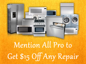 Our refrigerator was making a clicking sound and not cooling anything. We got in touch with Russ from All Pro late on a Wednesday, and he was able to come out the next day. Diagnosed the problem, explained what was wrong and gave us our options, then fixed it quickly for a reasonable price and a fraction of the cost of a new fridge. Would definitely recommend and use again.Kevin M.